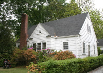This 1960s Colonial Revival sits in a sought-after neighborhood in Chapel Hill. The homeowner loved the site and the way the interior worked, but thought the outside was drab. She came to me with plans to replace the already-replaced windows, remove the aluminum and put up hardiplank siding, and… do something to bring it up to date. But what?