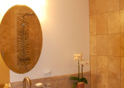 Over in Chapel Hill, a couple thoroughly in love with their home’s Modern style and architectural pedigree found 4/1 to update the three bathrooms. The current baths are finished with a mix of original cabinetry and 1980’s ‘improvements,’ that are showing their age.