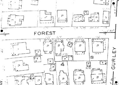 Then, an odd piece of information: the Sanborn maps show a one-story house in 1913, and a two-story house in 1937. Usually I’d assume one had been torn down and replaced, but with oddly similar footprints, matching locations, and the weird staircase issue… well, now we’re onto something.