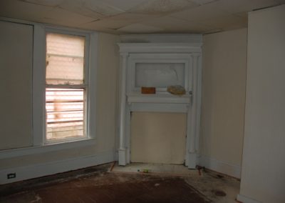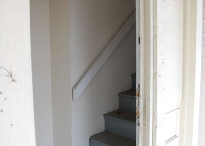 Located over in the Cleveland-Holloway neighborhood, it is part of the expansion to the historic district that my good friend Heather worked on a number of years ago and just down the street from 501 Oakwood. Like many of the properties in the area, it was cheap, unloved rental housing for some time, and shows it. Chopped up with little regard to the original form, there are odd hallways and skinny passages everywhere. The biggest puzzle to me was the front staircase: an enclosed stair that crosses over the front door’s sidelight leads to the upstairs apartment, and there is no evidence of stairs anywhere else.